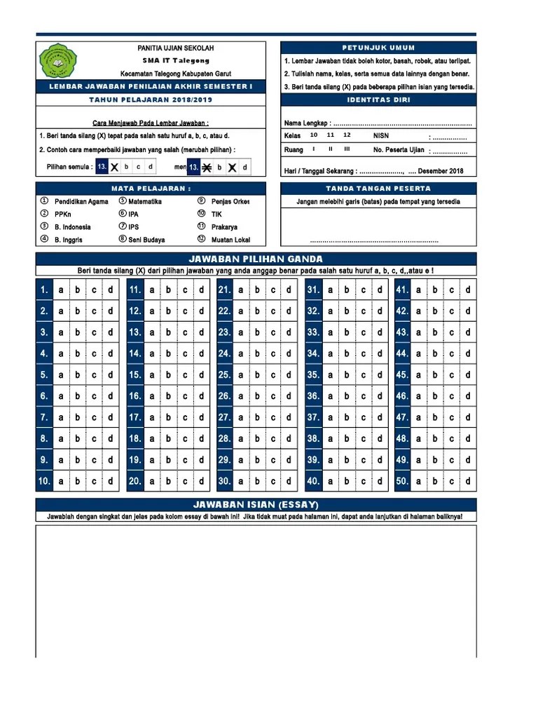 Contoh lembar jawaban pilihan ganda dan essay sd, lembar jawaban pilihan ganda 40 soal, lembar jawaban essay usbn, contoh lembar jawaban .